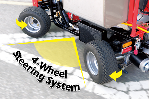Maximized work efficiency with 4-wheel simultaneous steering and a short turning radius!!